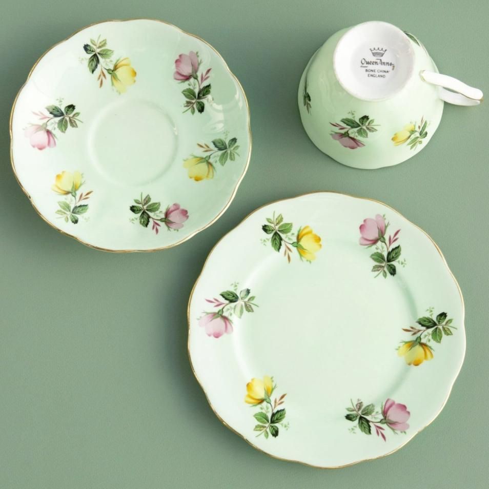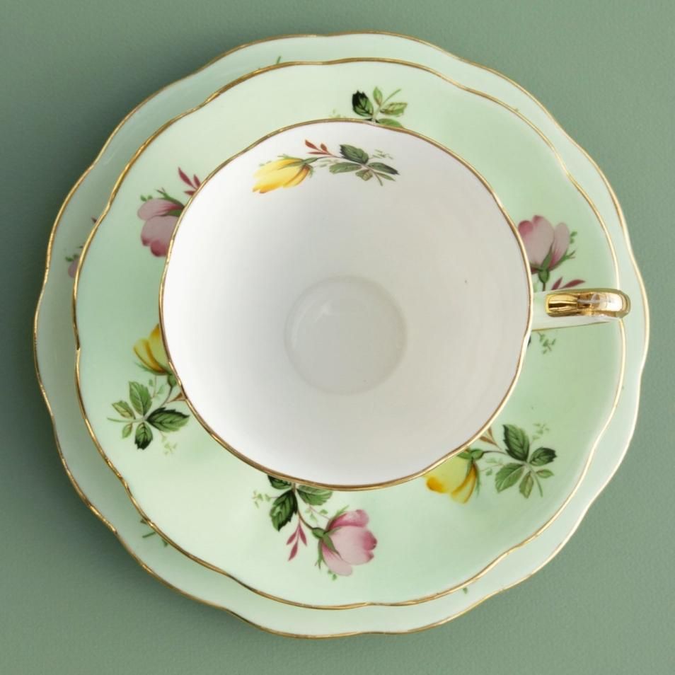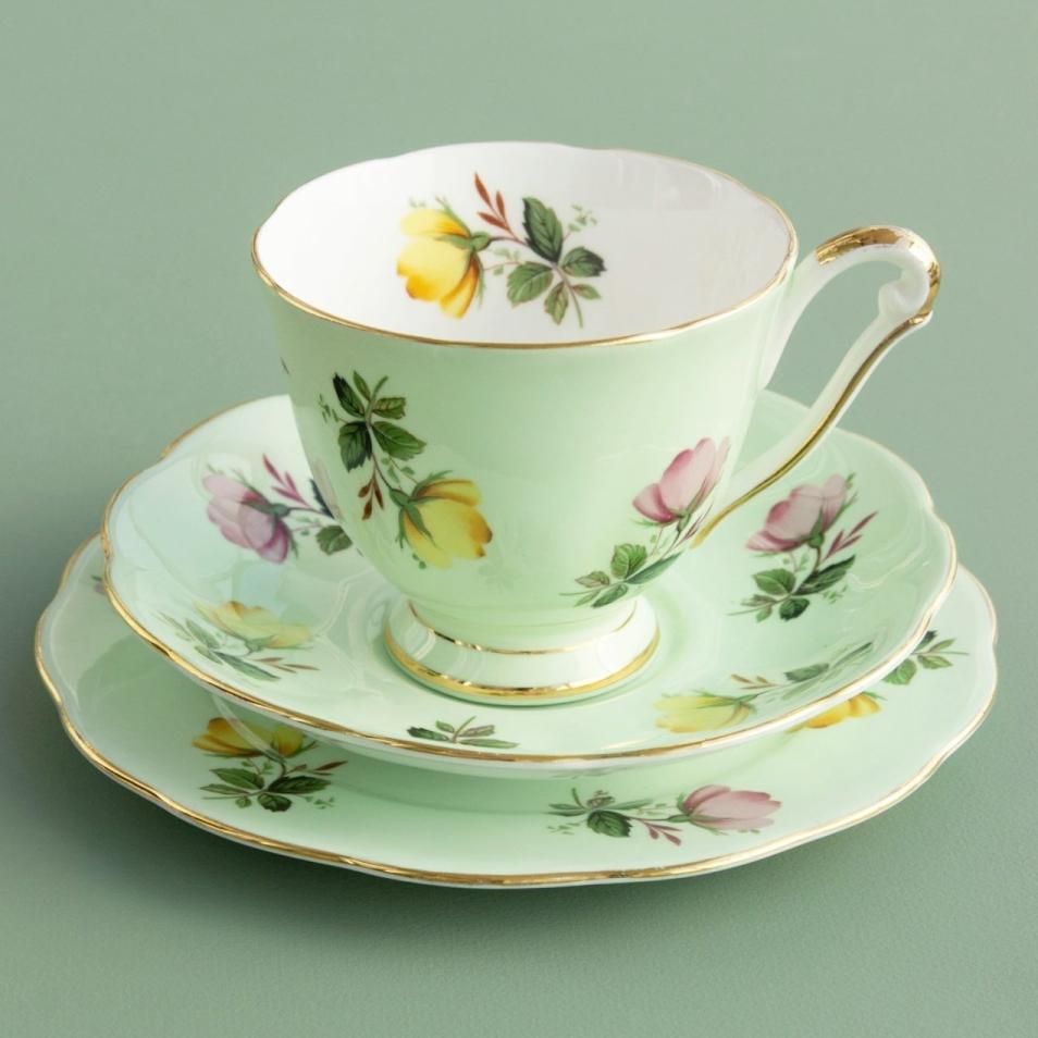 カップ&ソーサー&プレートトリオ(グリーンローズ)
