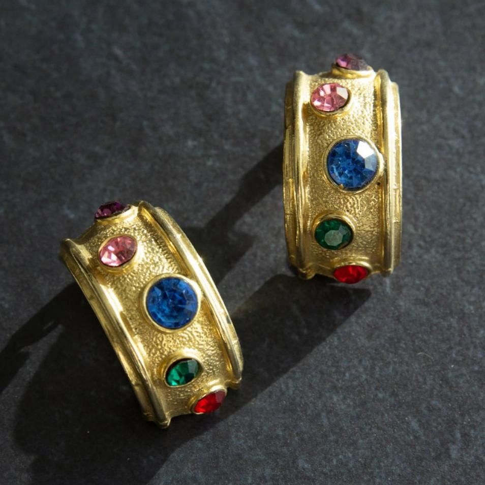 カラフルな縦長のビンテージイヤリングです。
